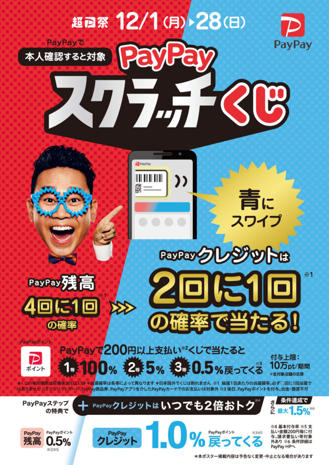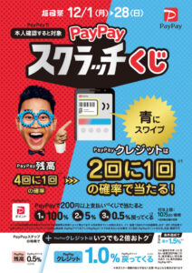 本日12月1日より、PayPayスクラッチくじがスタートしました!